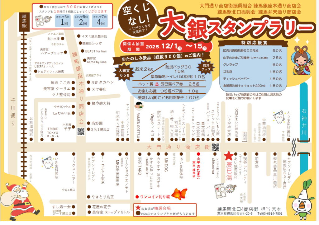 大好評!今年もやります!! 2025大銀スタンプラリー 2025 10/27 イベント情報 2025年10月27日 実施期間12/1(月)〜12/15(月) 景品交換12/1(月)〜12/15(月) 景品が無くなりしだい終了致します。 空くじなし! イベント情報 この記事をシェアする 大門通り商店街×auPAY最大40%値引きキャンペーンが 情報番組に取材頂きました!! 関連記事 いよいよ始まります!最大40%のauPAYの値引きクーポン 2025.10.28 大好評!今年もやります!! 大銀スタンプラリー 2025.10.28 大門通商店街第57回ボウリング大会 2025.10.28 今年もやります!中元セール!!/大門サマースタンプラリー 2025.10.28 中元セール サマースクラッチ大門くん お知らせ 2025.10.28 恒例!!大銀スタンプラリーのお知らせ 2025.10.28